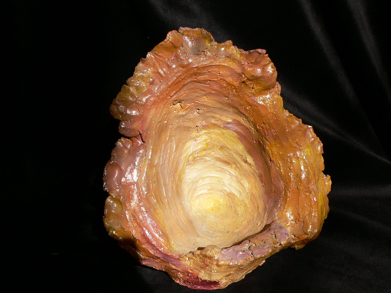 Son pintados luego con esmaltes de 1.040 grados, pigmentos bajo cubierta, óxidos y vidrio. Busco un efecto irregular y orgánico.
